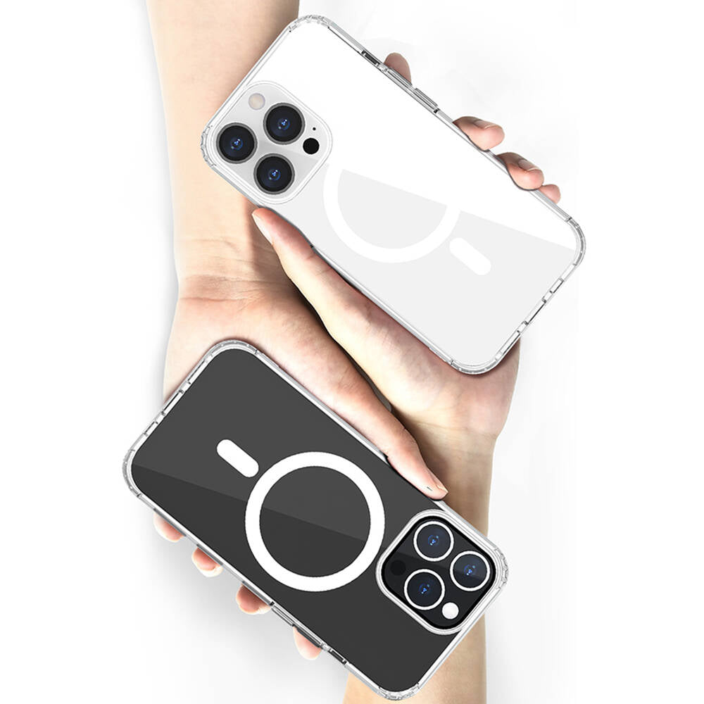 iPhone 13 Kılıf Magsafe Şarj Özellikli Airbagli Şeffaf PC Arka Yüzey Recci Magnetik Suction Serisi Kapak