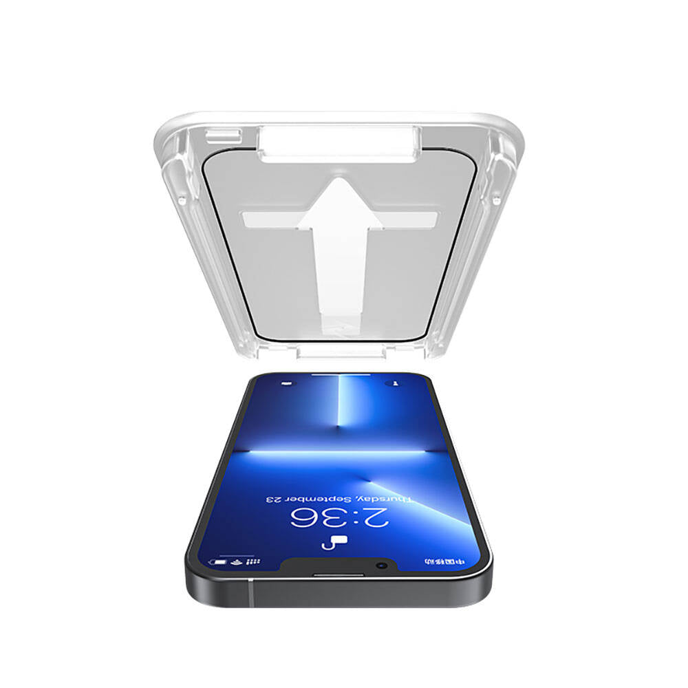 Apple iPhone 13 Recci RSP-A10 HD Temperli Cam Ekran Koruyucu + Kolay Uygulama Aparatlı Siyah