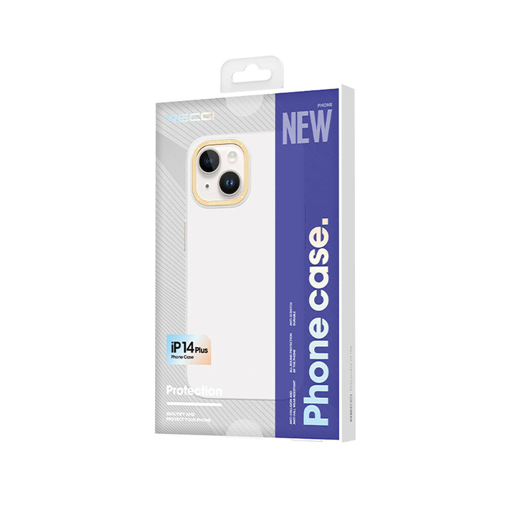 Apple iPhone 14 Plus Kılıf Metal Kamera Çerçeveli Recci Glaze Serisi Kapak Beyaz