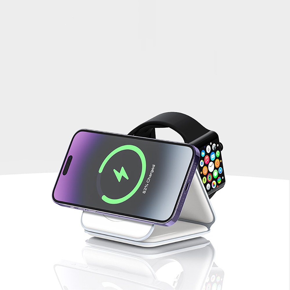Recci RCW-36 3in1 Katlanabilir Magnetik Kablosuz Şarj Standı Beyaz