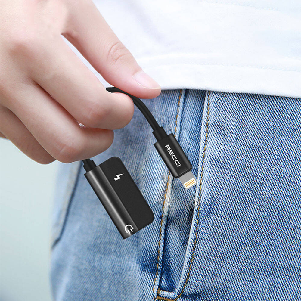 Recci RDS-A06 Lightning 2in1 Şarj ve Ses Adaptörü Siyah