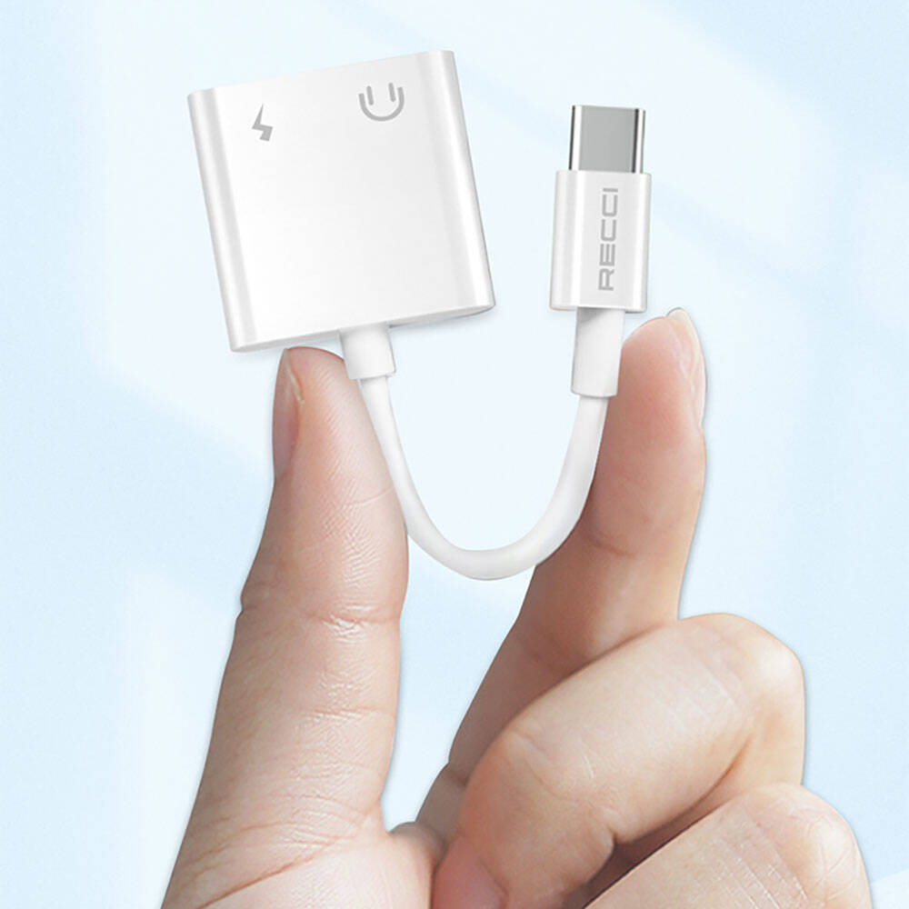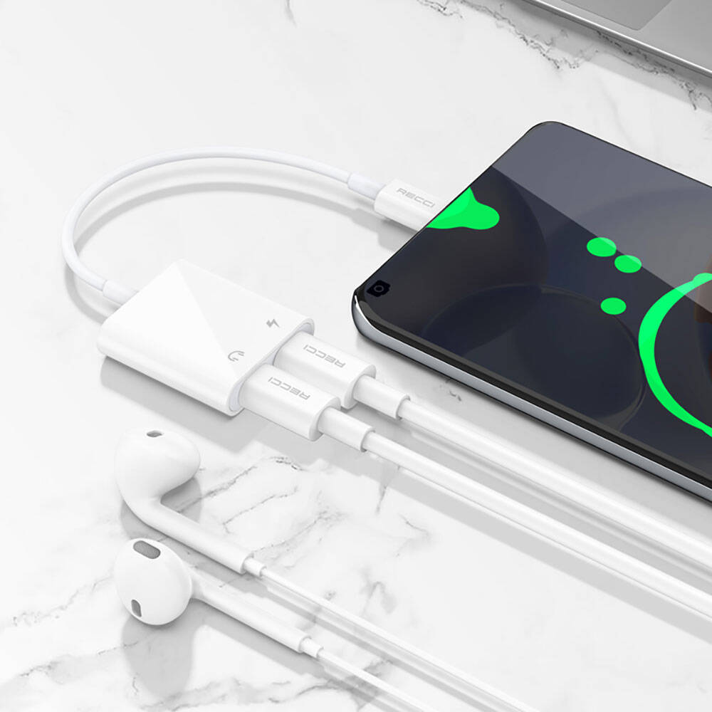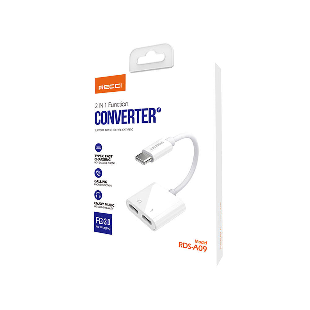 Recci RDS-A09 Type-C PD3.0 2in1 Şarj ve Ses Adaptörü Beyaz