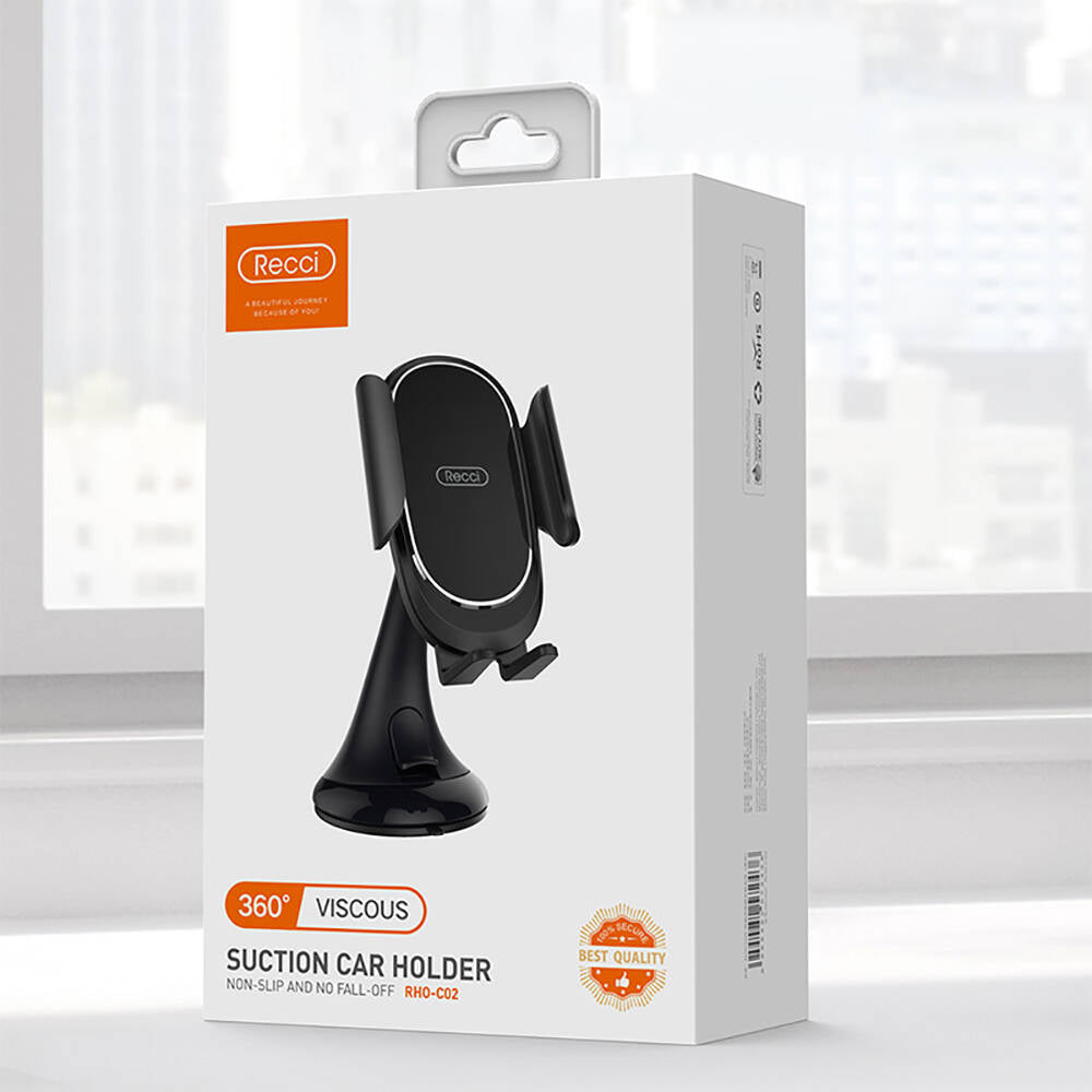 Recci RHO-C02 360 Derece Dönebilen Vakumlu Tasarım Araç Telefon Tutucu Siyah