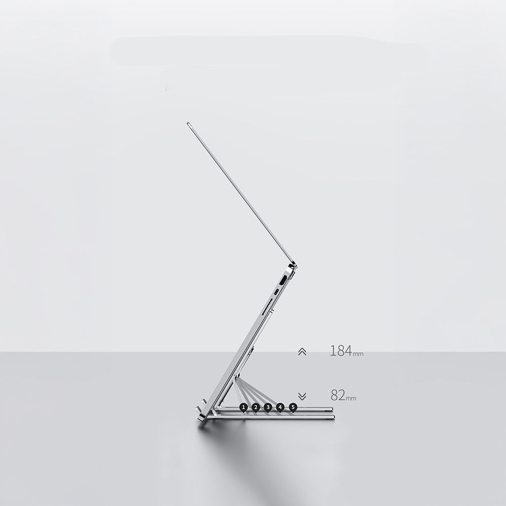 Alüminyum alaşım ve dayanıklı ABS malzemelerle güçlendirilen bu stand, cihazınızı kaymalara ve çizilmelere karşı koruyan silikon desteklerle donatılmıştır. Geniş taban yapısı sayesinde laptopunuzu güvenle taşıyabilir; kayma veya devrilme endişesi olmadan verimli çalışabilirsiniz. Katlandığında ince formuyla çantanıza kolayca sığar ve dilediğiniz yere götürebilirsiniz.