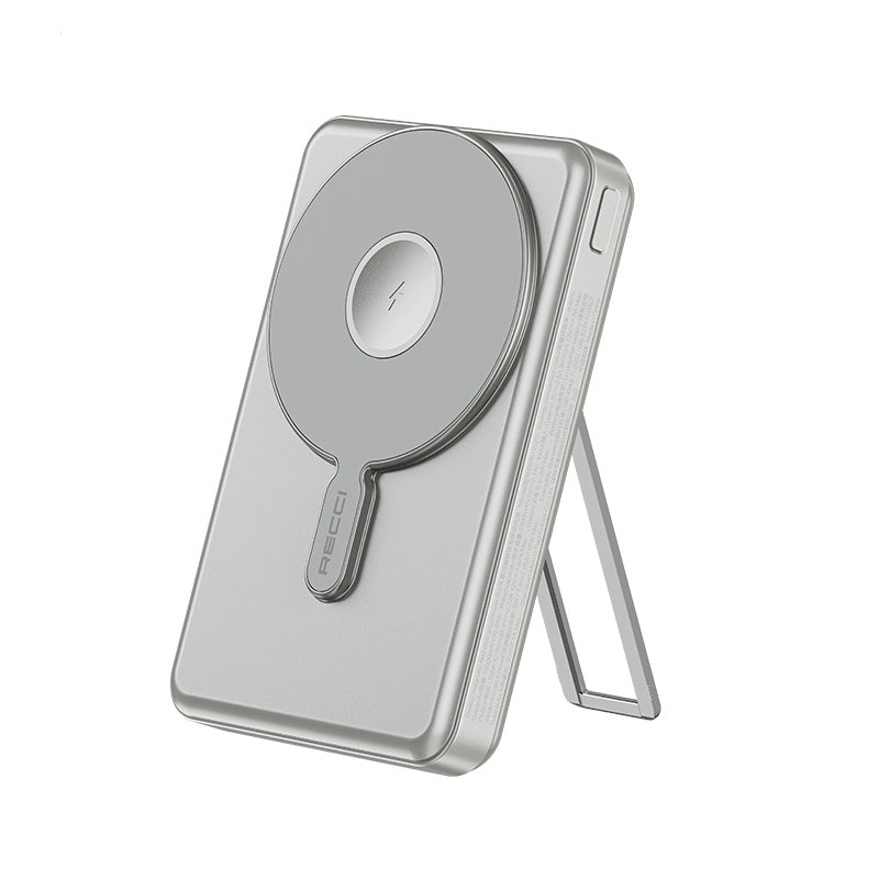 Recci RPB-W23 PD 20W Led Göstergeli Standlı Kablosuz Şarj Özellikli Type-C ve Lightning Kablolu Powerbank 15W 10000mAh