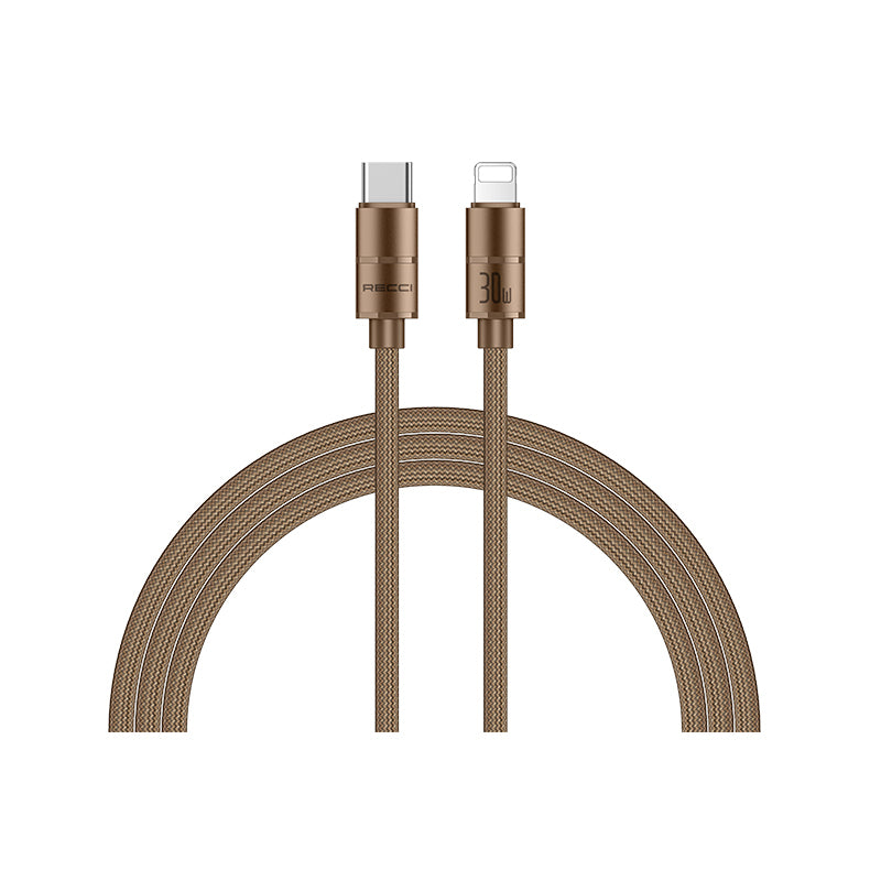 Recci RS08CL Warrior Serisi Type-C to Lightning 30W Hızlı Şarj Özellikli Data ve Şarj Kablosu 1.2M Desert Gold