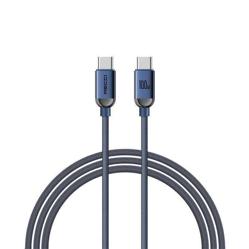 Recci RS09CCPD Crystal Serisi 100W Hızlı Şarj Özellikli Type-C To Type-C PD Kablo 1.2M Mavi