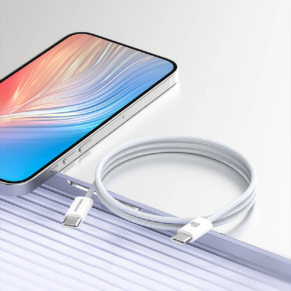 Recci RS15CC Nature Serisi 60W Hızlı Şarj Özellikli Type-C To Type-C PD Kablo 2M Beyaz