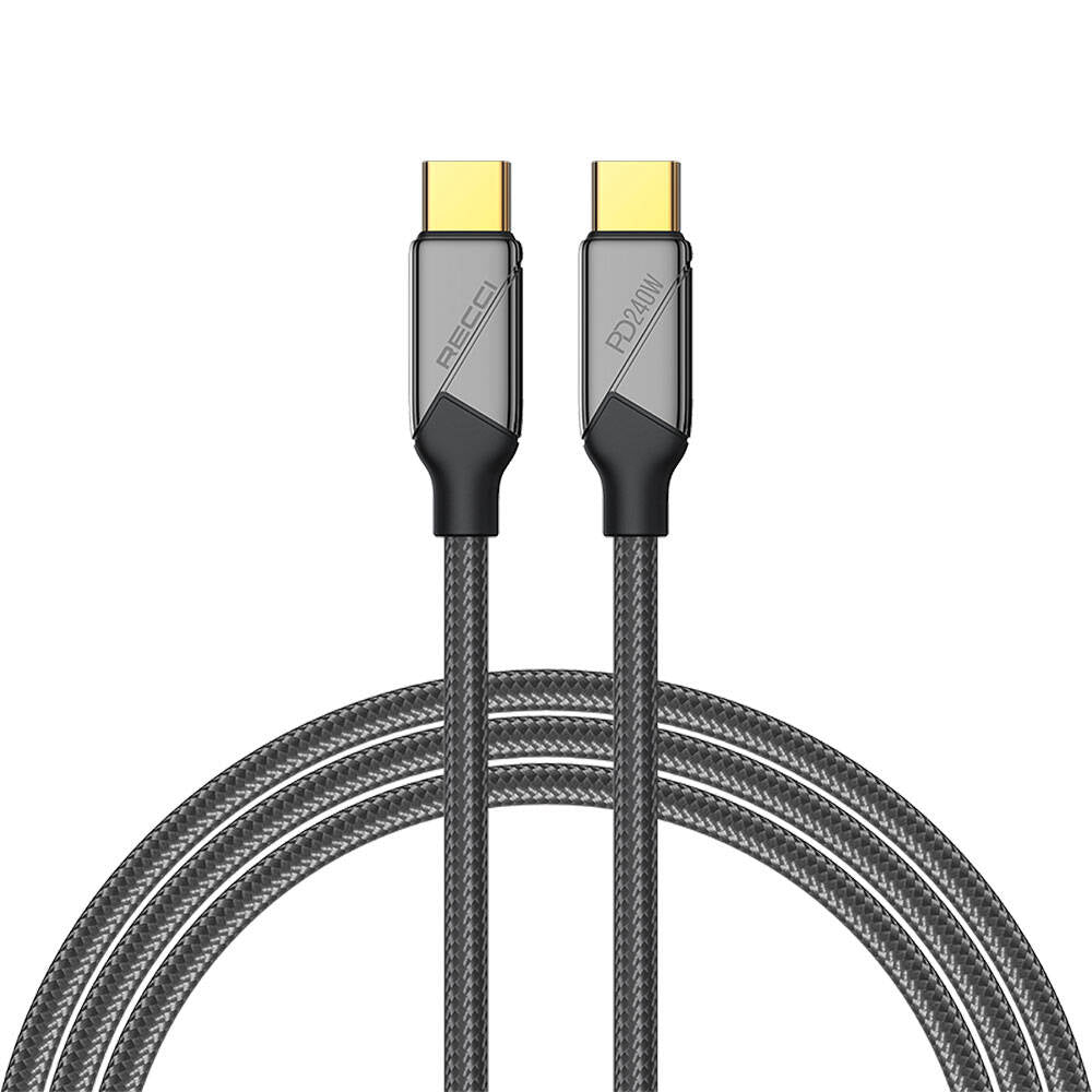 Recci RS18CC Voyage Serisi Type-C to Type-C PD 240W Hızlı Şarj Özellikli Data ve Şarj Kablosu 1.5M Siyah