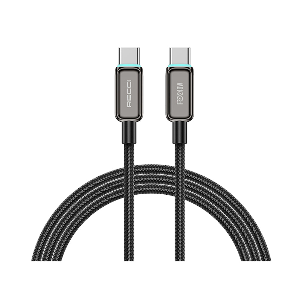 Recci RS42CC Lamp Display Serisi Type-C to Type-C PD 240W Hızlı Şarj Özellikli Data ve Şarj Kablosu 1.5M Siyah