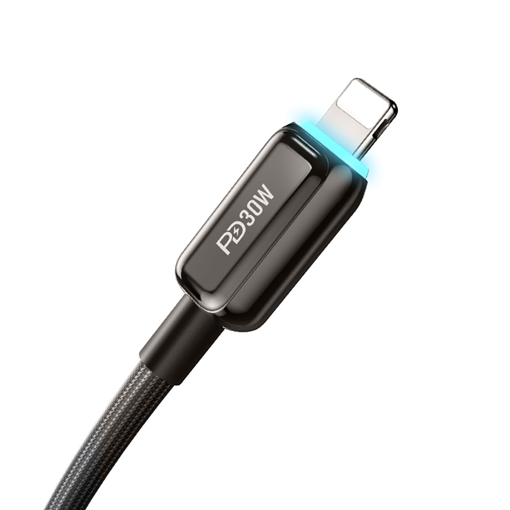 Recci RS42CL Lamp Display Serisi Type-C to Lightning PD 30W Hızlı Şarj Özellikli Data ve Şarj Kablosu 1.5M Siyah